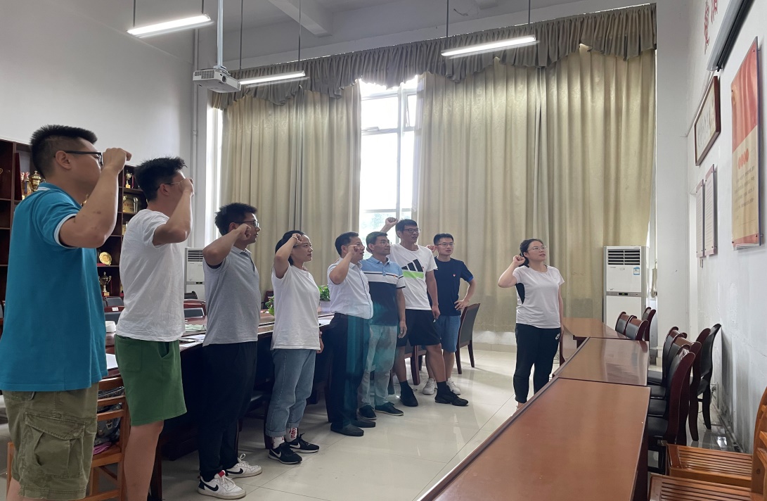 专题党课后,在体育馆党员活动室,支部书记闻剑飞带领全体党员重温入党誓词,他们面向党旗,右手握拳,庄严宣誓。铿锵有力的誓言昭示着听党话、跟党走、对党忠诚的决心和态度。进一步增强了党员的党性观念,激励着每一位党员传承红色基因,发扬红色传统,坚守初心,砥砺前行。(jinnianhui今年会教工第四党支部)