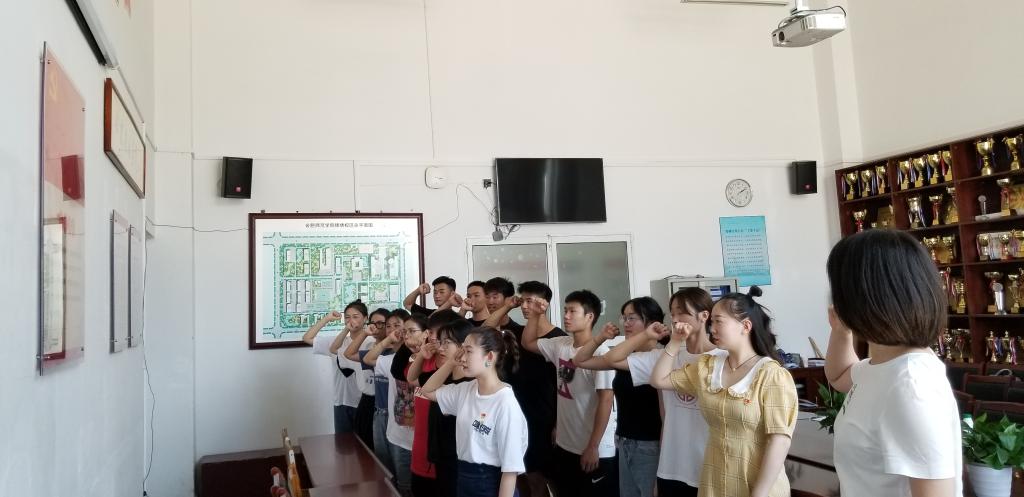 宣誓活动在jinnianhui今年会党员活动室举行,学生党支部书记童欣带领全体党员,面向党旗,右手握拳,庄严宣誓。
