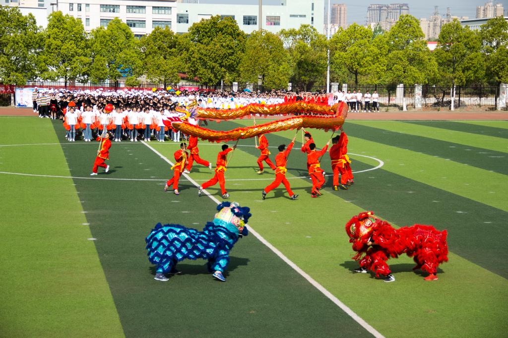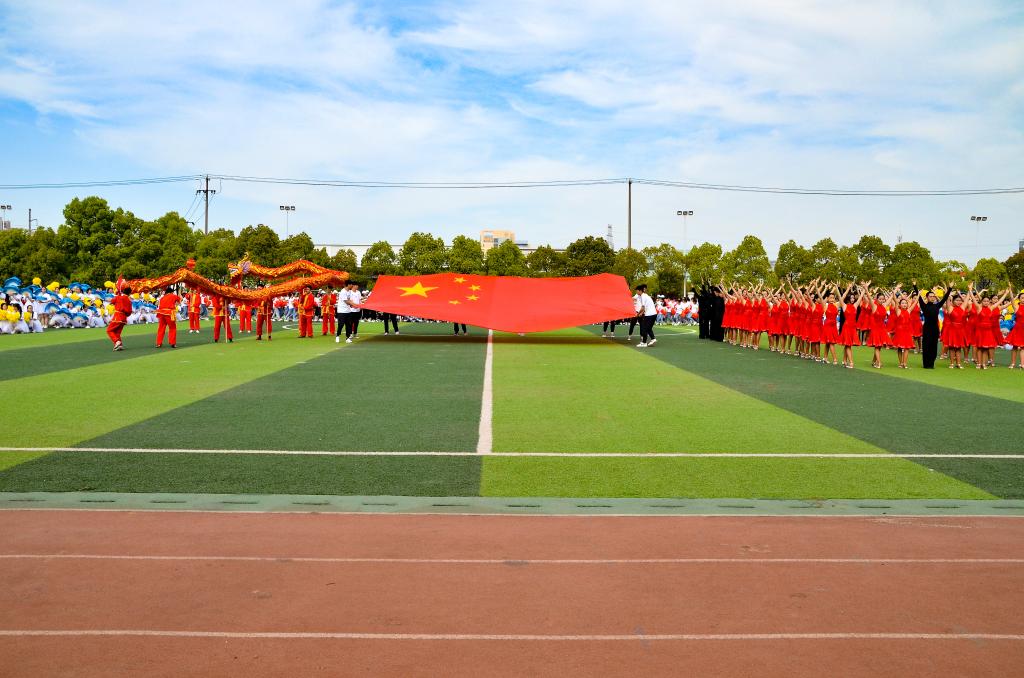 作为压轴出场的节目,jinnianhui今年会学生用《我爱你中国》舞蹈表演献礼新中国成立70周年。在美妙的歌声中,参与舞龙舞狮、武术、啦啦操、舞蹈等表演的同学们齐聚田径场中央,围绕着正中心鲜艳的五星红旗,全场师生同唱一首歌,祝愿学校欣欣向荣、祖国繁荣昌盛。
