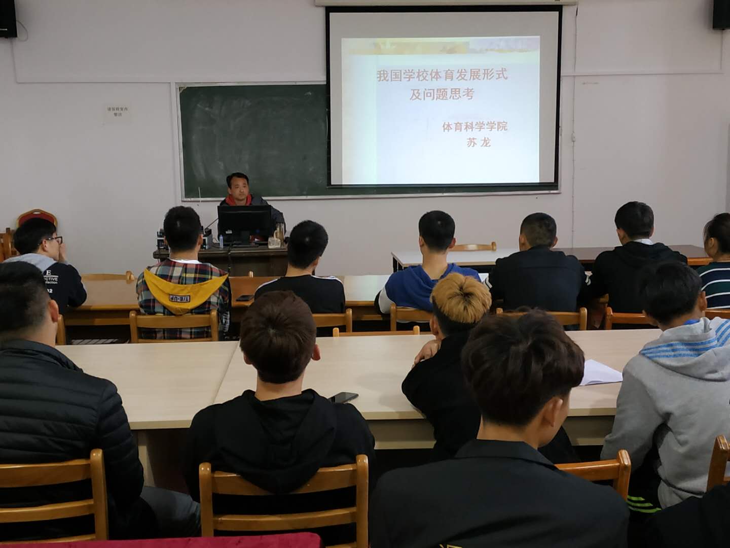 本网讯 为深入落实全国教育大会精神,发挥基层党支部在教育党员、管理党员、监督党员和组织群众、宣传群众、凝聚群众、服务群众的作用,加强学习型党组织建设。对标支部组织党员认真学习业务知识的基本要求,发挥教师党员在教学科研工作中的先锋模范作用。3月29日中午,jinnianhui今年会教工第三党支部在体育馆研究生教室组织开展学术活动。教工第三党支部委员苏龙副教授为大家讲授“当前我国学校体育若干误区的思考”。教工第三党支部全体党员和部分体育专业学生参加本次活动。