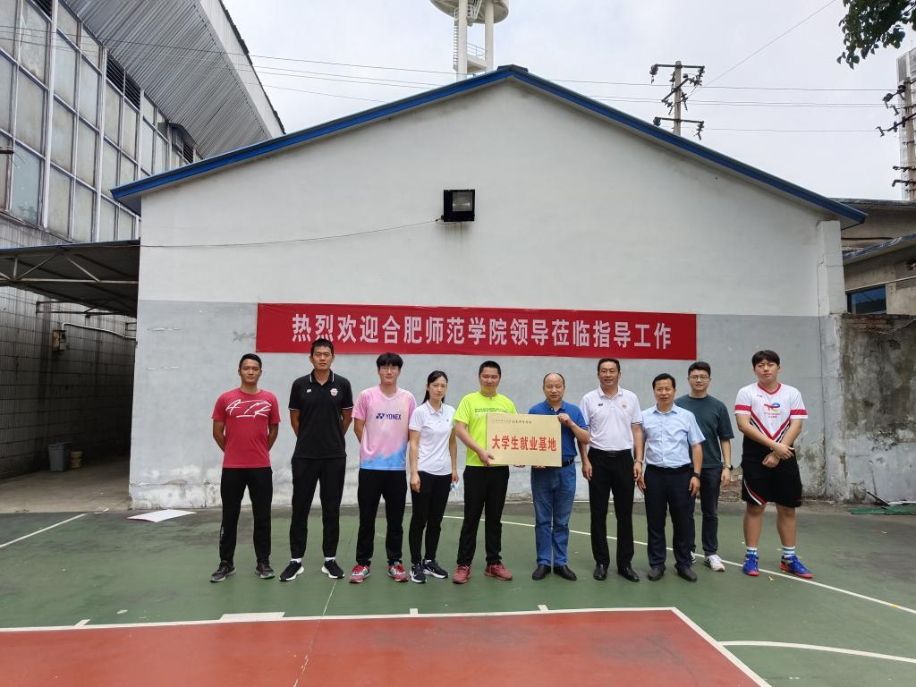 随后,校领导一行前往安徽省体育馆,在企业相关人员陪同下参观了安徽霸都体育文化发展有限公司、安徽起点篮球俱乐部的训练场地,与企业负责人交流人才培养模式、校企合作等,并举行大学生就业基地授牌仪式。