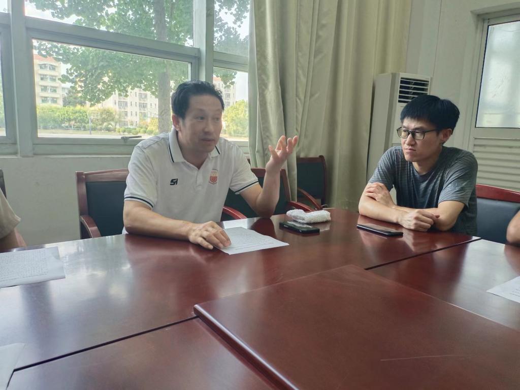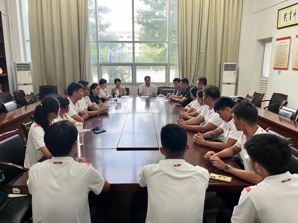 本网讯 8月15日下午,今年会田径队在锦绣校区体育馆会议室举行安徽省第十五届运动会高校部田径比赛出征仪式。jinnianhui今年会院长宋旭、体育教育系主任李晓静、运动训练主任游永豪、教工第二党支部书记陈秀,田径队领队汪辉、教练员陆保云、周妩娜和吴哲,及全体参赛运动员参加出征仪式。仪式由教工第二党支部书记陈秀主持。