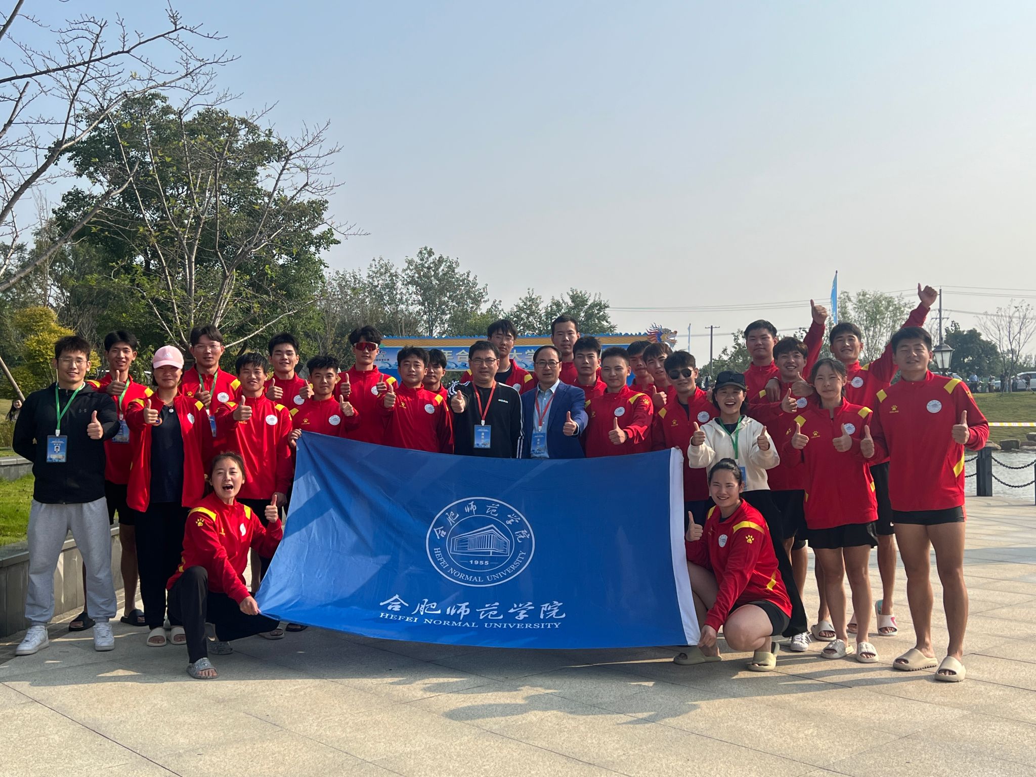 本网讯 10月14日上午,由合肥市体育局、新站高新区管委会和安徽省龙舟协会联合主办,新站高新区社会发展局承办的合肥市首届大学生龙舟联赛在合肥市新站高新区少荃湖举行。赛事吸引了中国科学技术大学、安徽医科大学、安徽中医药大学等16所高校参加。最终,由2021级体能训练专业学生组成的龙舟队,克服训练磨合时间短的困难,奋勇争先、顽强拼搏、团结协作,在合肥市首届大学生龙舟联赛上收获二等奖的好成绩。