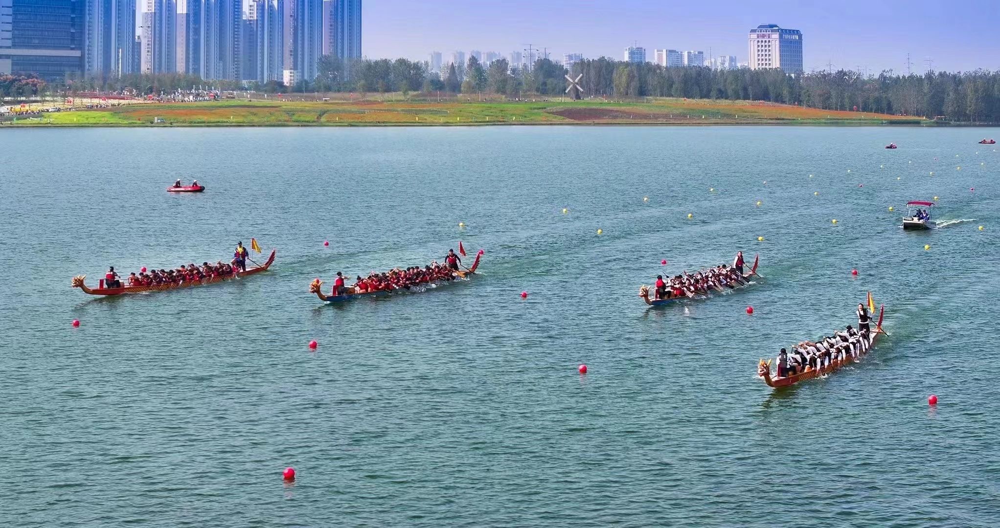 学院高度重视,精心选拔由汪辉老师担任领队,朱佳华、魏威担任教练。赛前,院党委委员、副院长周端明在jinnianhui今年会党委书记赵波的陪同下前往赛场,看望慰问参赛的师生,希望同学们秉承“自强不息、追求卓越”的合师精神,团结协作、奋勇争先,赛出风采、赛出水平,充分展示合师学子良好的精神风貌。周端明一行现场观看了22人龙舟混合组 500 米直道竞速赛,并在开赛前参加了点睛仪式。