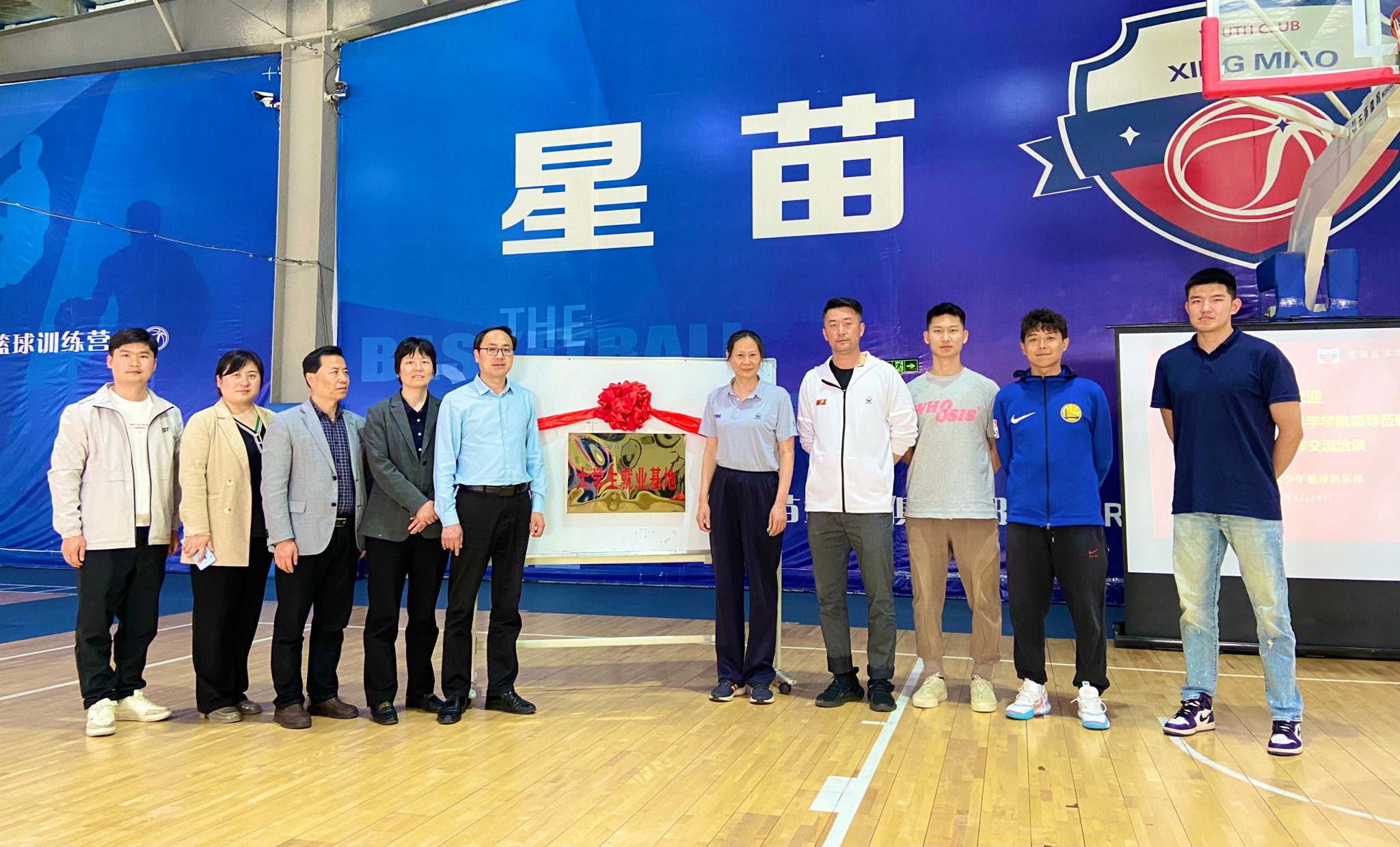 为落实教育部、省教育厅关于“访企拓岗”促就业专项行动工作部署,深化校企合作,多措并举为毕业生创造更多的实习就业机会,4月18日下午,jinnianhui今年会党委书记赵波、副书记王飞、副院长席莉、运动训练系副主任陈秀、毕业班辅导员张康康等一行先后到安徽星苗青少年篮球俱乐部、安徽踢嗨体育文化发展有限公司开展“访企拓岗”促就业专项行动暨校企合作交流洽谈会,并现场举行了共建大学生就业实习基地的签约和授牌仪式。