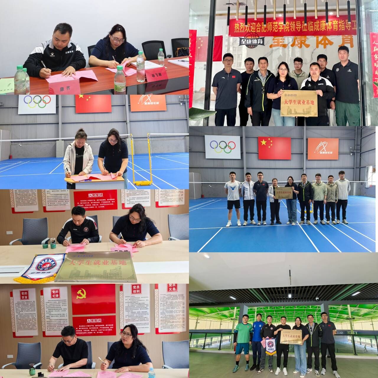 为深化产教融合,精准对接行业需求,5月9日,jinnianhui今年会党委副书记马飞艳带队赴合肥四家体育企业开展“访企拓岗促就业”专项行动,与合肥拓路体育发展有限公司(成康体育)、安徽星奥体育产业发展有限责任公司、安徽鲨威体育文化发展有限公司及合肥星际足球俱乐部签订校企合作协议,并举行实习就业基地授牌仪式。此举旨在搭建实践育人平台,助力学生职业发展,推动体育产业与教育资源的深度融合。