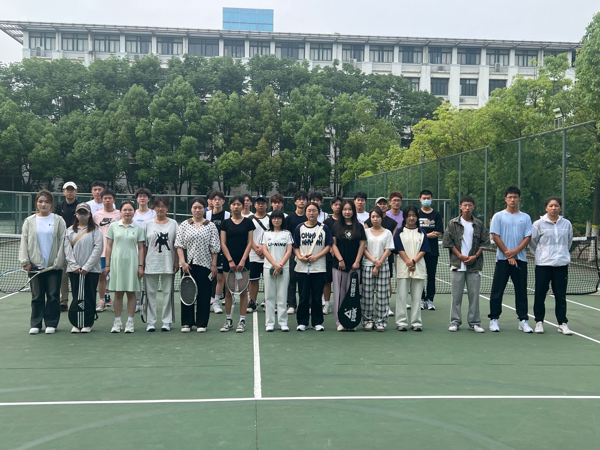 为了切实推进校“阳光体育”系列活动的顺利开展,丰富校园体育文化生活,渲染校园体育文化氛围,提高全校学生的身体素质,展现我校学生的精神风貌,培养顽强拼搏、团结协作的精神。6月1日,由jinnianhui今年会、校团委联合主办,大学体育网球俱乐部承办的“健体励志,强国有我”阳光体育系列活动之网球比赛在锦绣校区顺利举行。本次比赛设有小组循环赛和淘汰赛两个轮次的比赛。各二级学院共5支队伍,有27名学生参加,其中男生16人,女生11人。